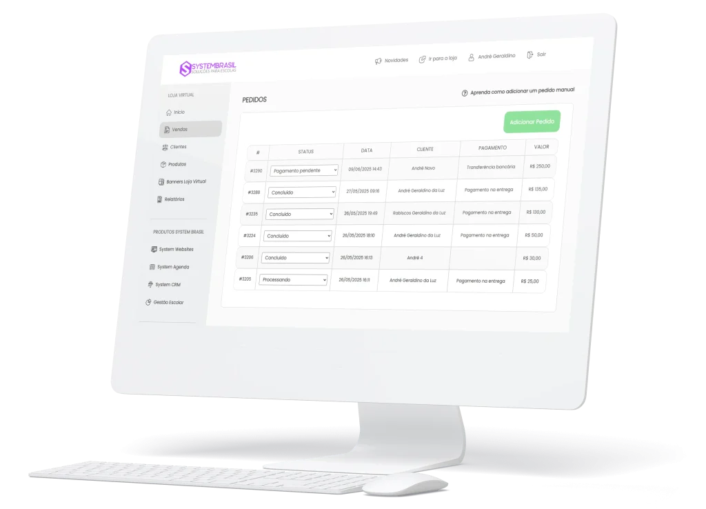 A Loja Virtual da System Brasil foi criada para conectar a escola às famílias, oferecendo um ambiente exclusivo para compras de uniformes, materiais didáticos e acessórios. Tudo centralizado em um painel simples de gerenciar, com pagamentos integrados e relatórios completos de vendas.